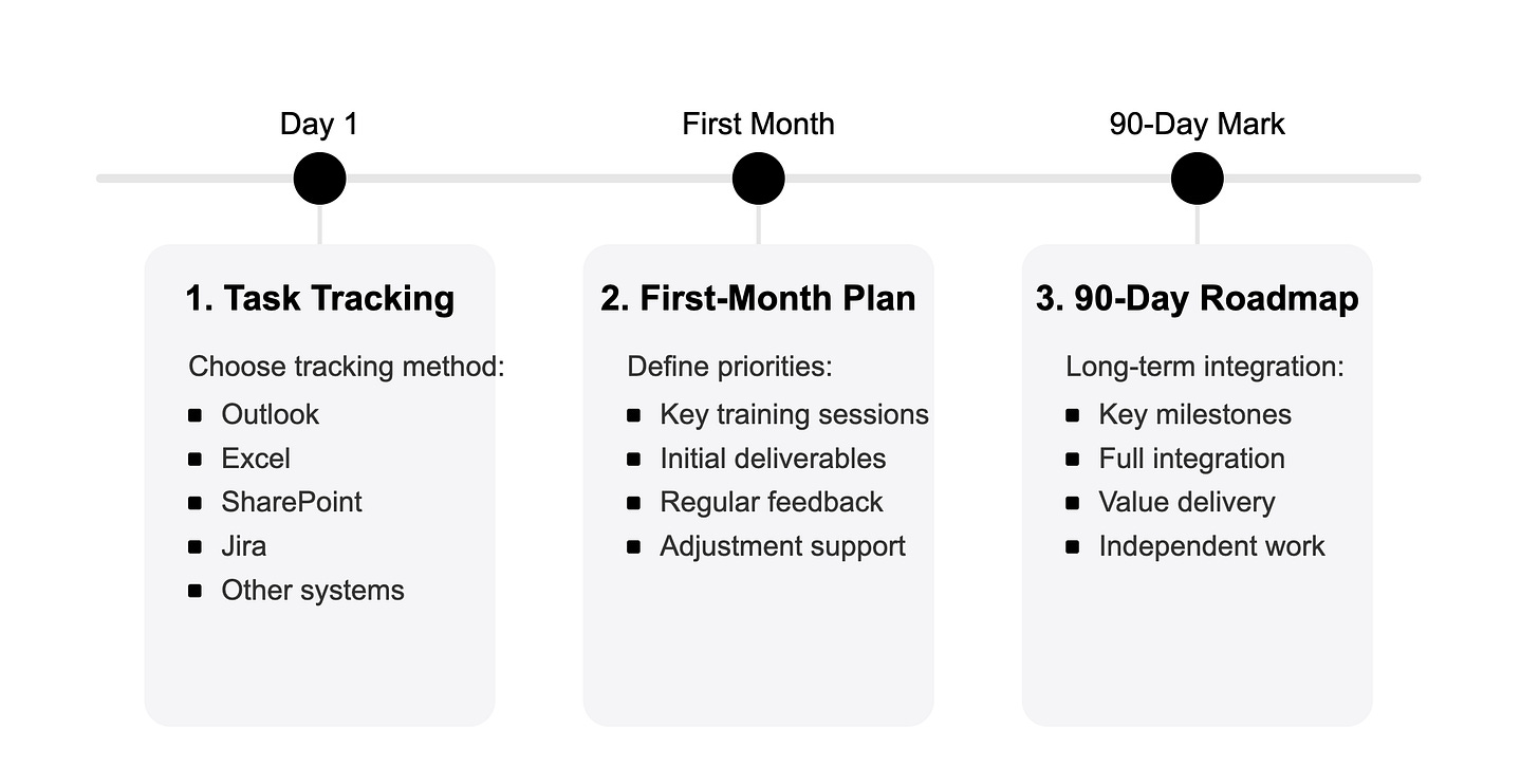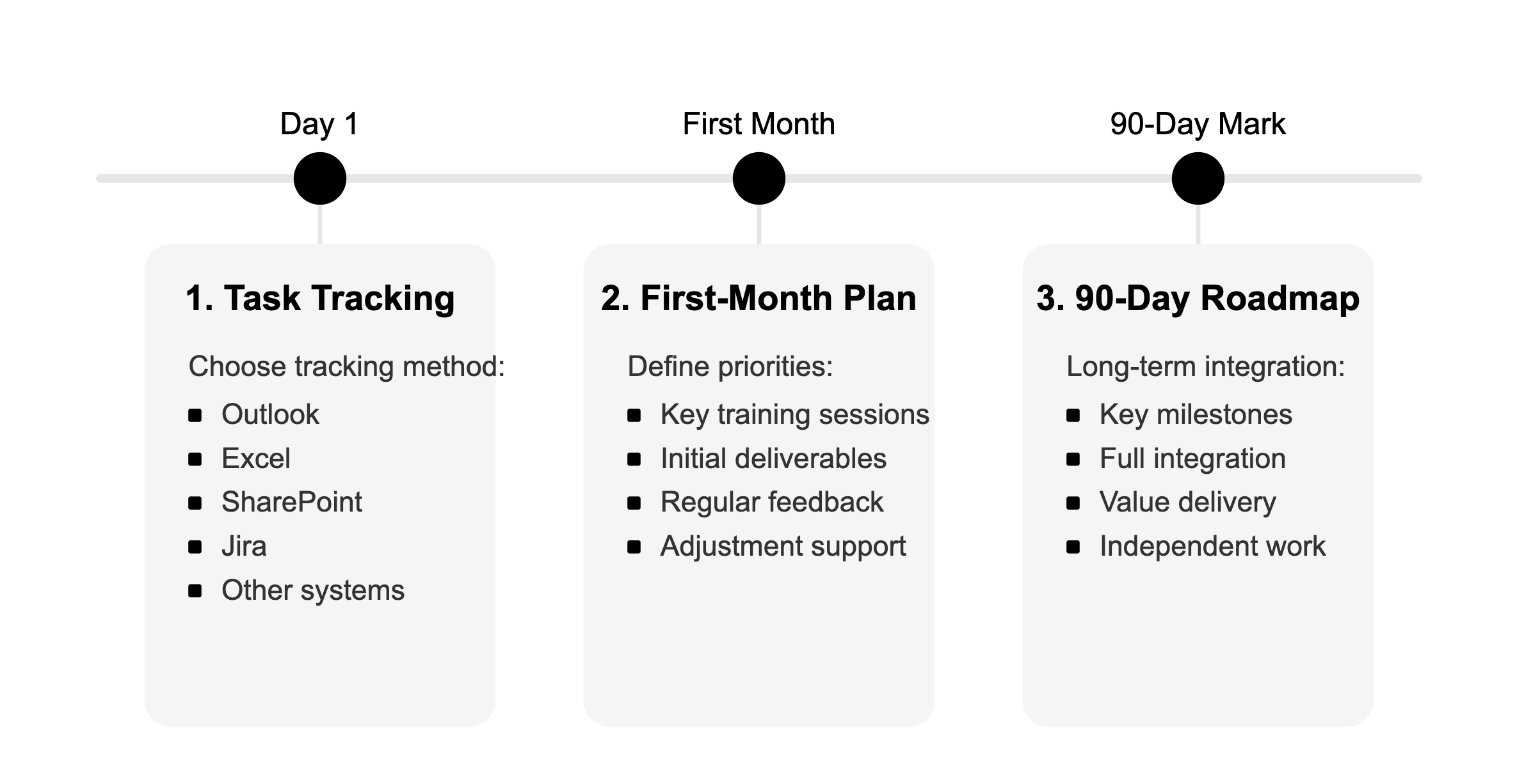 Task Tracking – Decide how onboarding tasks will be monitored—whether through Outlook, Excel, SharePoint, Jira, or another system that fits your company’s workflow.