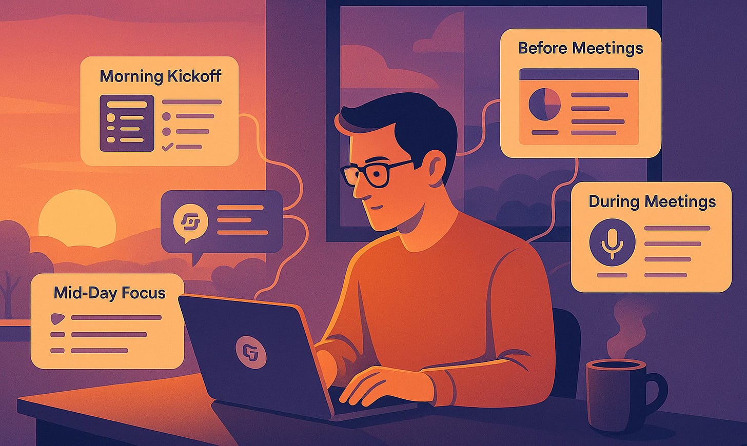 AI doesn’t need to overhaul your workflow — it works best when it slips into small, repeatable habits. Here’s what a typical BA day can look like with AI support: