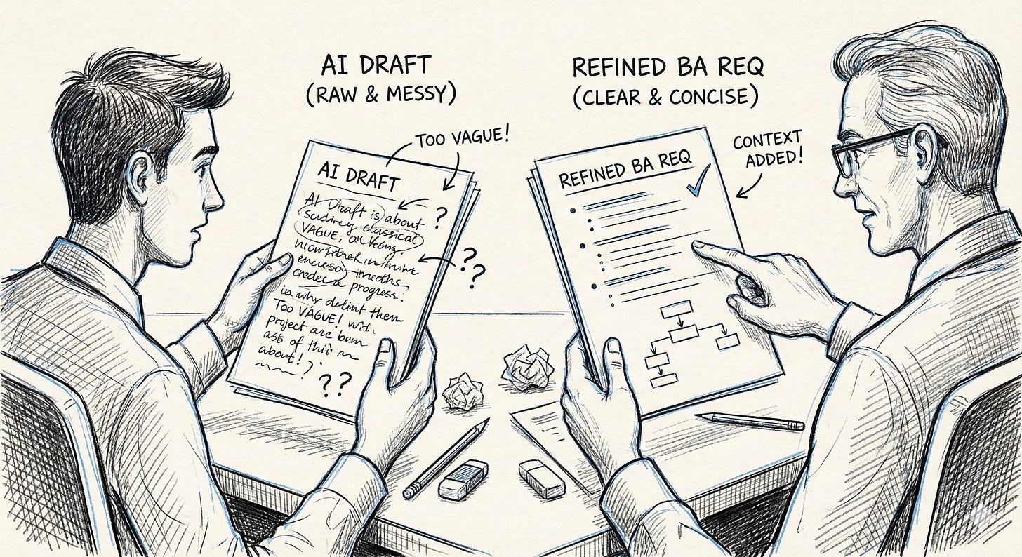 During training, I noticed that many junior analysts rely heavily on AI-generated outputs and copy them almost verbatim into requirements. The result is long, repetitive descriptions that say the same thing in slightly different ways.
